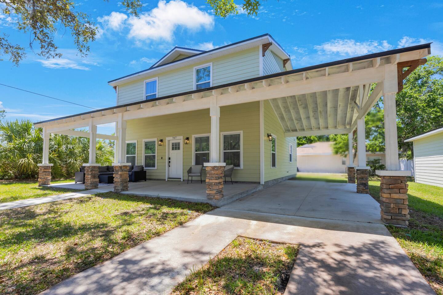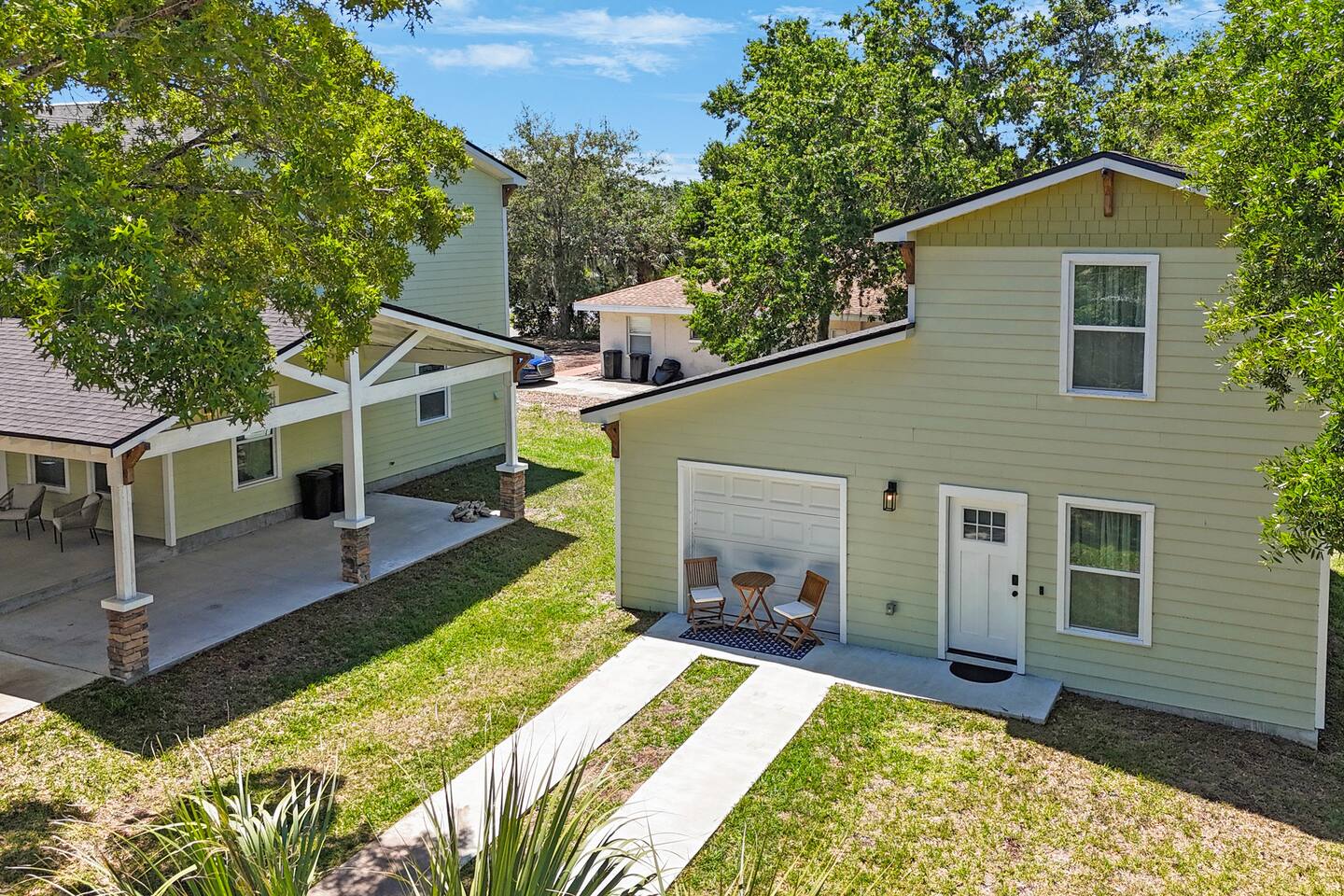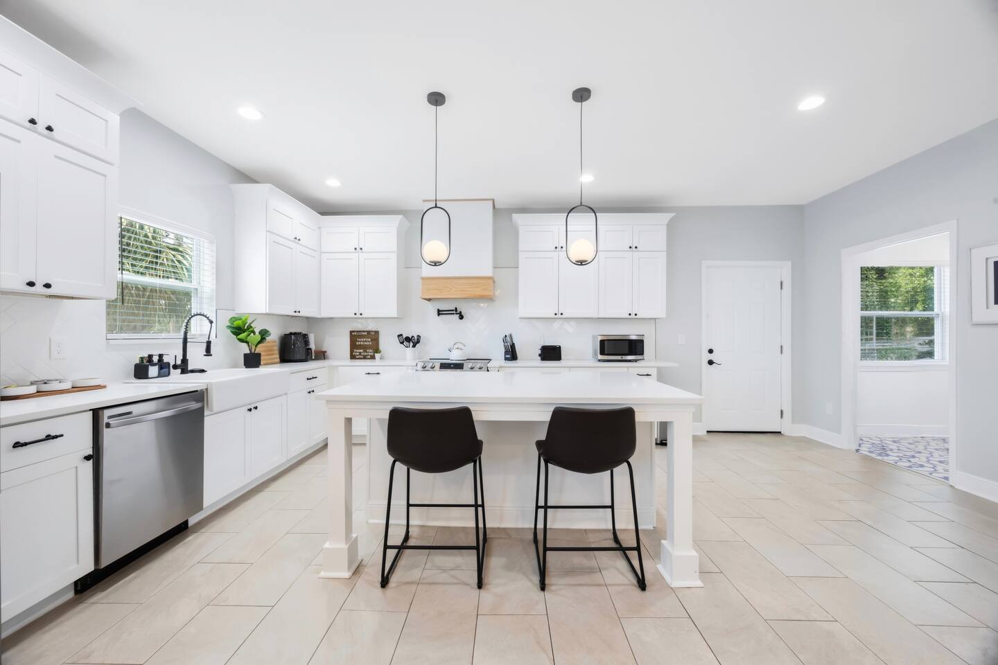 When you book this listing, you’ll have exclusive access to both homes, just steps apart, offering a total of: • 4 Bedrooms (3 bedrooms in the main house + 1 bedroom in the cottage) • 4.5 Bathrooms (2.5 bathrooms in the main house + 1.5 bathrooms in the cottage) • 2 Fully Equipped Kitchens • 2 Living Rooms • 2 Dining Areas • 5 Parking Spots • 2 Private Laundry Areas The main house features a spacious open layout with plenty of seating, a fully stocked chef's kitchen, and cozy bedrooms designed for relaxation. The cottage offers a private, quiet retreat with its own kitchen, living room, and a beautiful primary suite; perfect for couples, grandparents, or guests wanting a little extra space. Modern amenities like fast Wi-Fi and ROKU TVs in every room. Private covered and open driveway parking ensures convenience and privacy. Book now for a charming escape in picturesque Tarpon Springs.